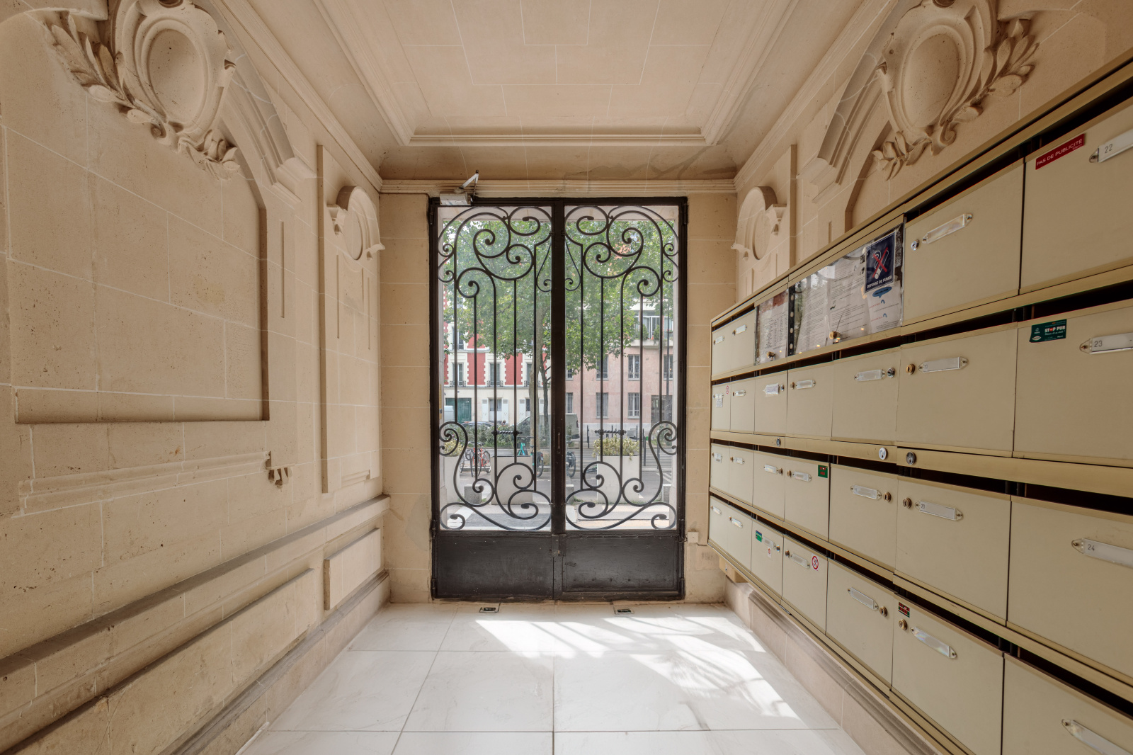 Parfaitement situé dans un bel immeuble pierre de taille authentique Haussmannien, ravissant appartement de type Double Séjour avec Cuisine équipée et incorporée + jolie salle de douches avec WC – le tout en parfait état avec deux grandes fenêtres ouvrant sur un espace clair – 3m de hauteur sous plafond – parquets, moulures, cheminée.