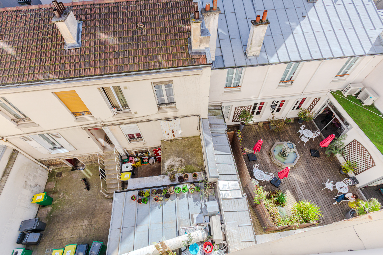 Studio situé au 4ᵉ et dernier étage, sans ascenseur, exposé plein Sud donnant sur cour au calme.