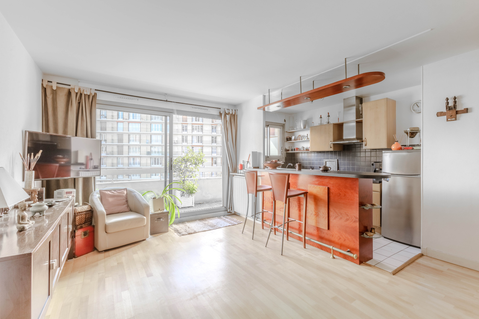Très agréable 2 Pièces avec belle Cuisine incorporée et parfaitement équipée le tout ouvrant sur un Vaste Balcon 7,72m² au " Soleil levant ".