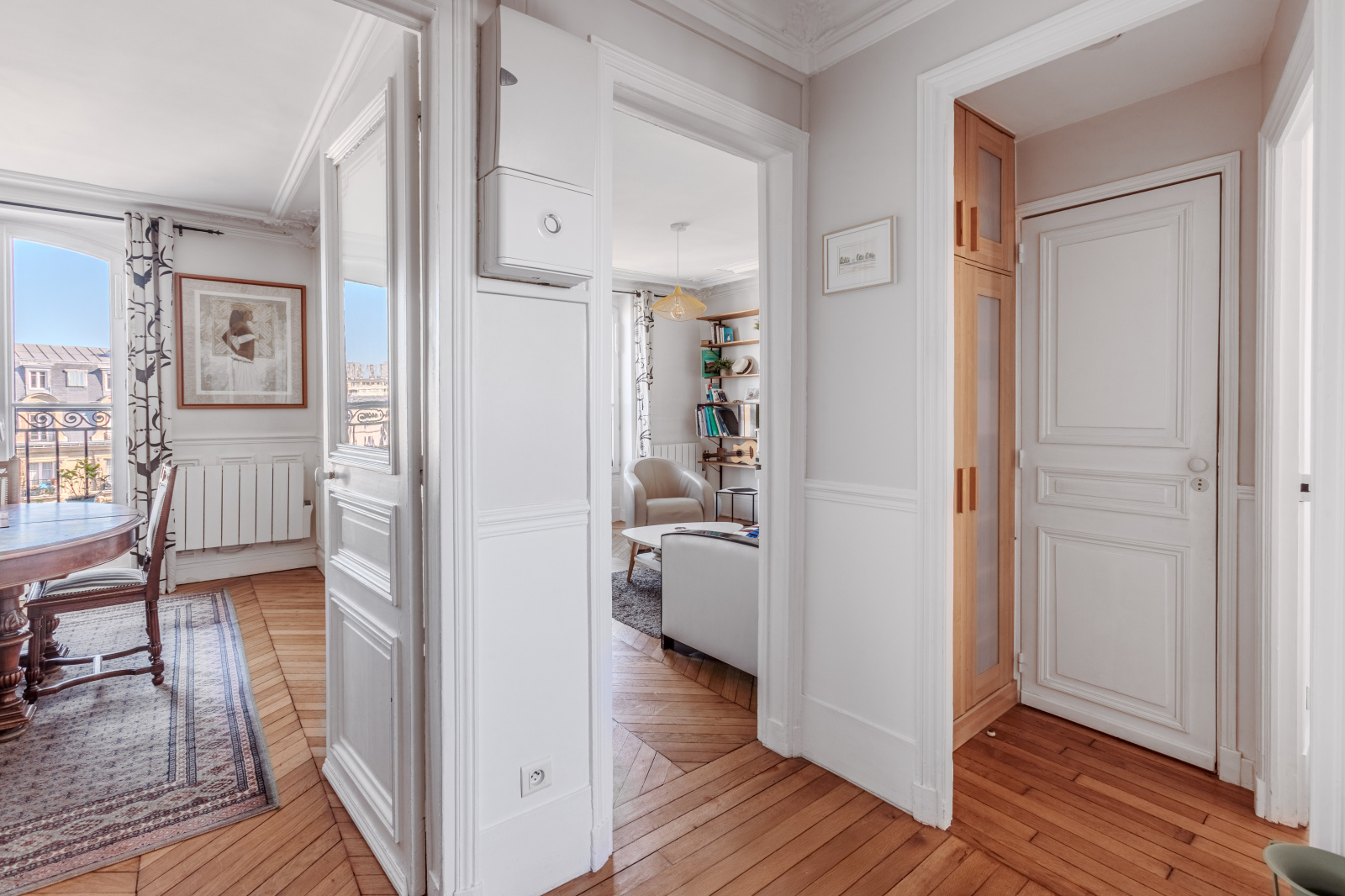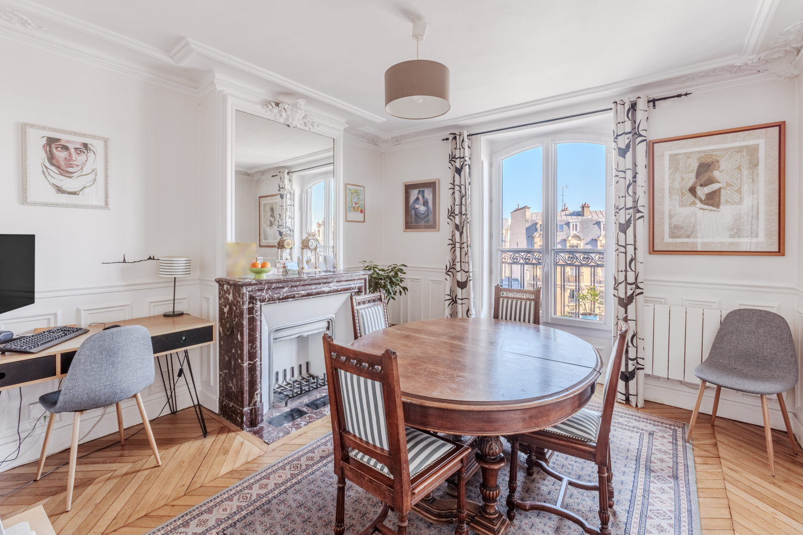 L'appartement bénéficie de tout le charme de l'ancien '' Moulures - Parquets - Cheminées ''.