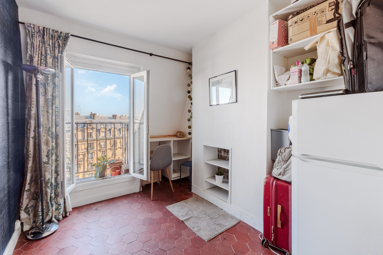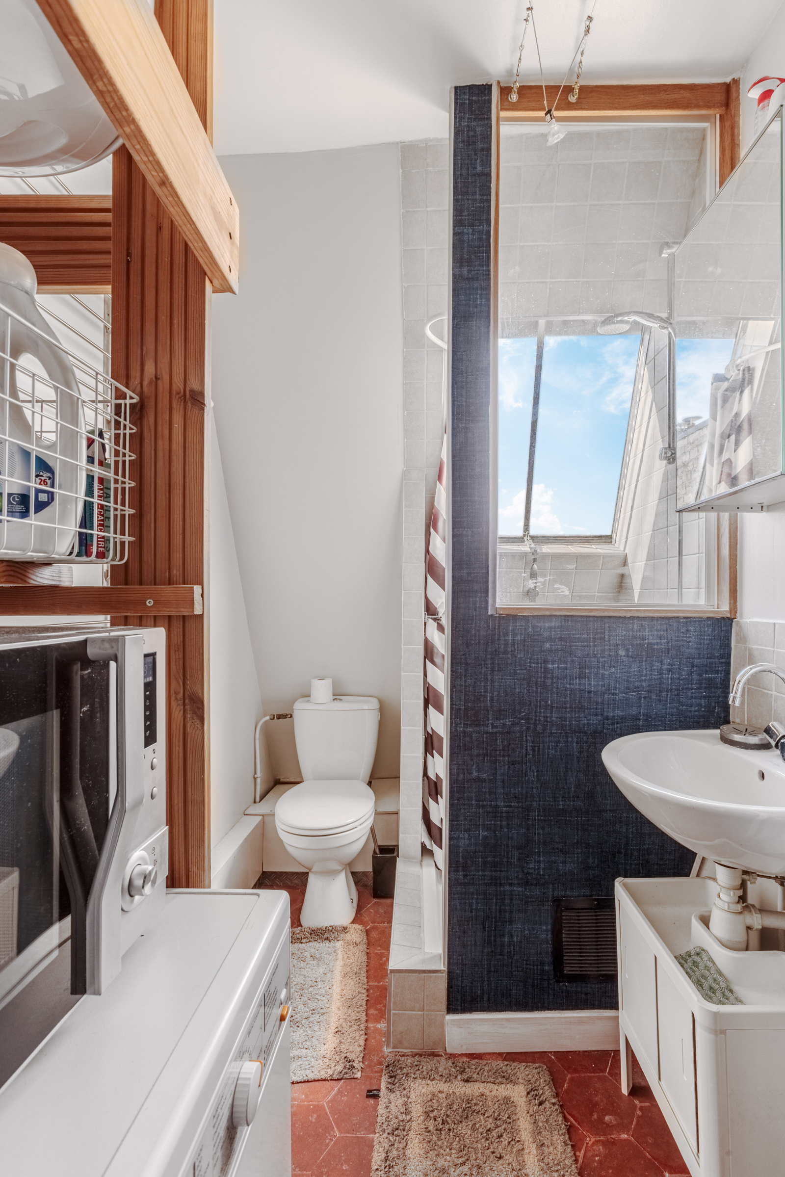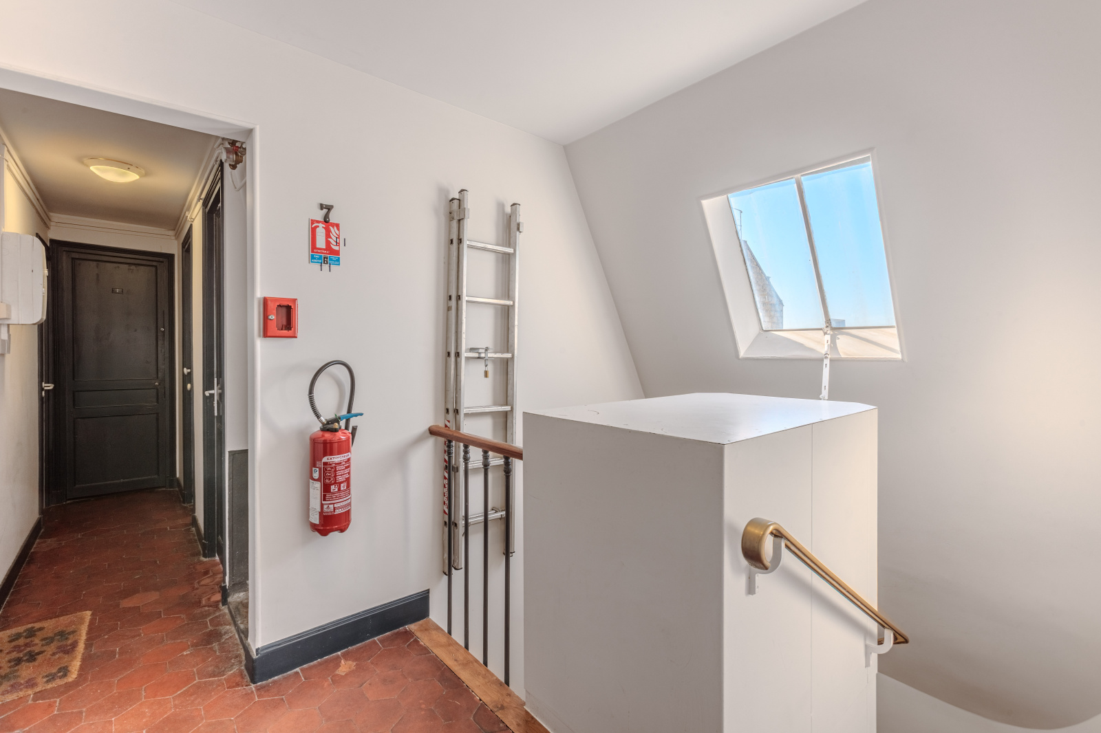 Au 7ème étage, une chambre de bonne de 8m² + un espace salle d'eau avec WC/ buanderie 3,80m².