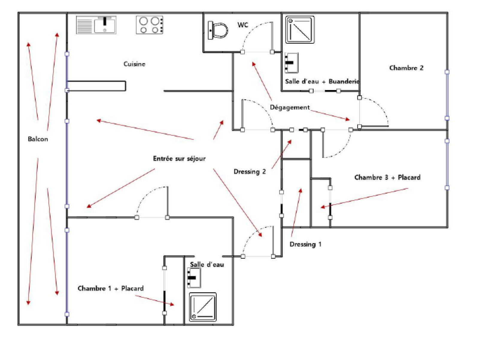 Ravissant 4 Pièces composé d’un Séjour de 25m² ouvrant sur un grand balcon « Plein Soleil » Agréable Cuisine équipée – 3 Chambres parfaitement indépendantes dont une avec salle d’eau – Salle de bains – WC indépendant – Nombreux rangements .