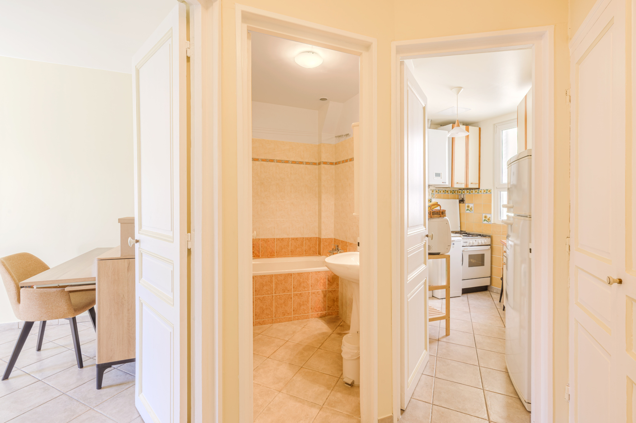 Il se compose d’une belle entrée, d’un double séjour lumineux ouvrant sur deux agréables balcons, de deux belles chambres, d’une salle de bains, d’une cuisine équipée et d’un WC indépendant. De nombreux rangements sont présents dans l’appartement.