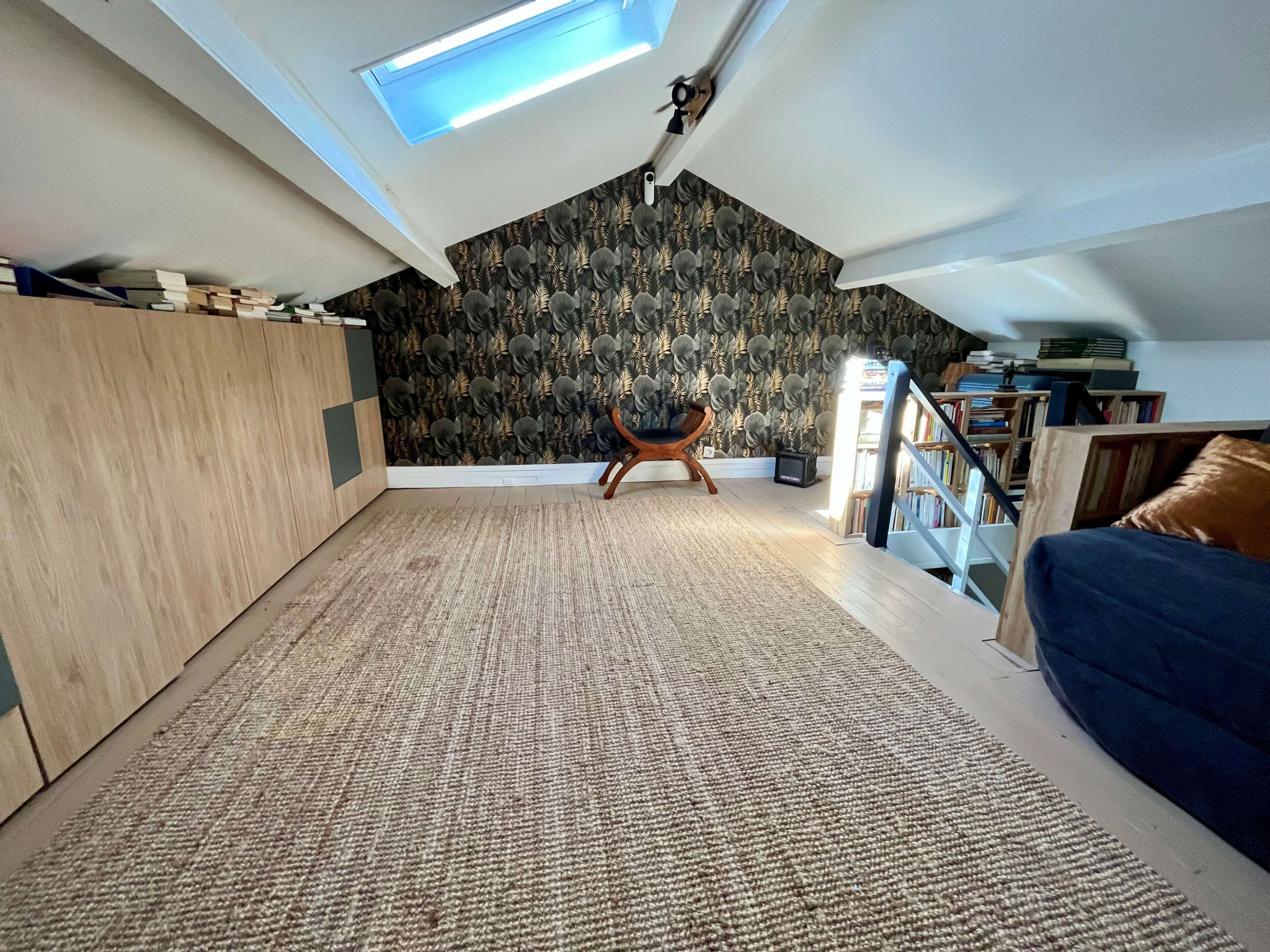 Au dernier niveau des combles aménagés en 4ème chambre d’appoint et salle de jeux.